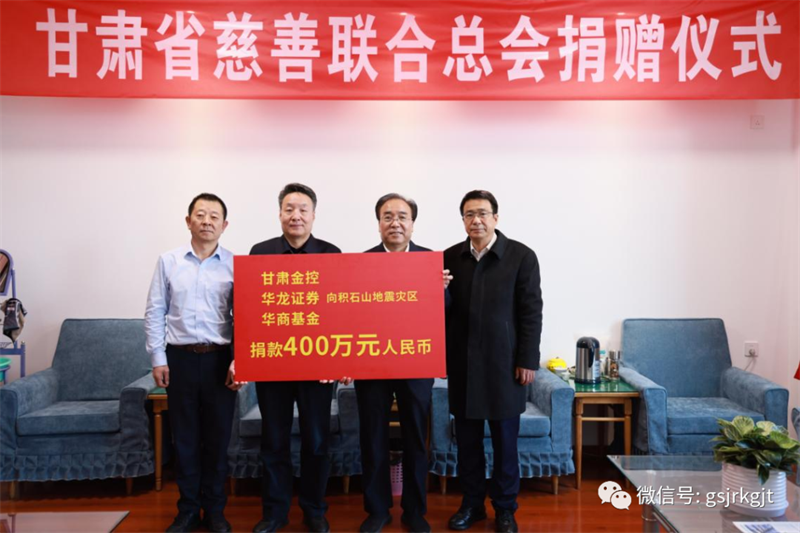 12月21日,甘肅金控集團(tuán)、華龍證券及華商基金通過甘肅省慈善聯(lián)合總會,向積石山地震災(zāi)區(qū)捐款400萬元,全力支持抗震救災(zāi)工作。