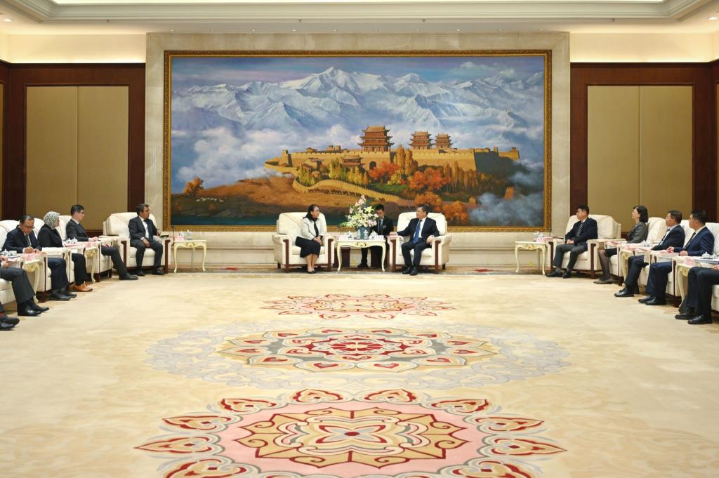 省委副書記、省長任振鶴4月25日在蘭州會見了亞洲國家使節(jié)和高級別外交官代表團(tuán)一行。