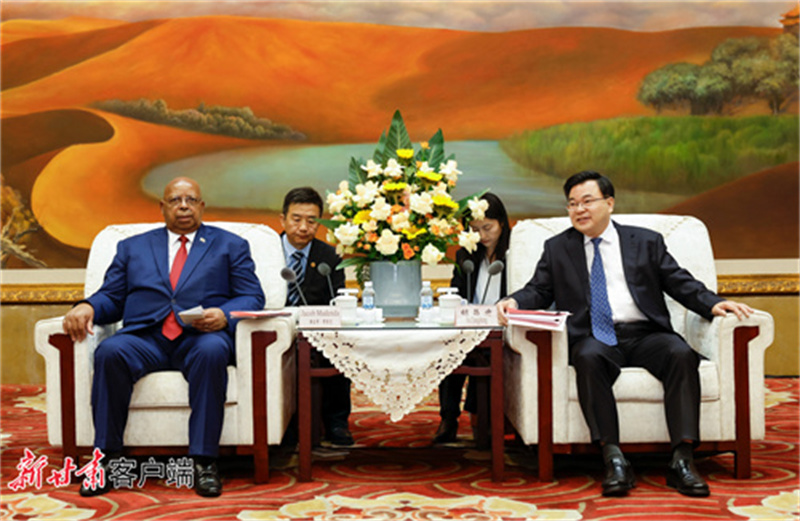 省委書記、省人大常委會主任胡昌升5月15日下午在蘭州會見了津巴布韋眾議長穆登達一行。