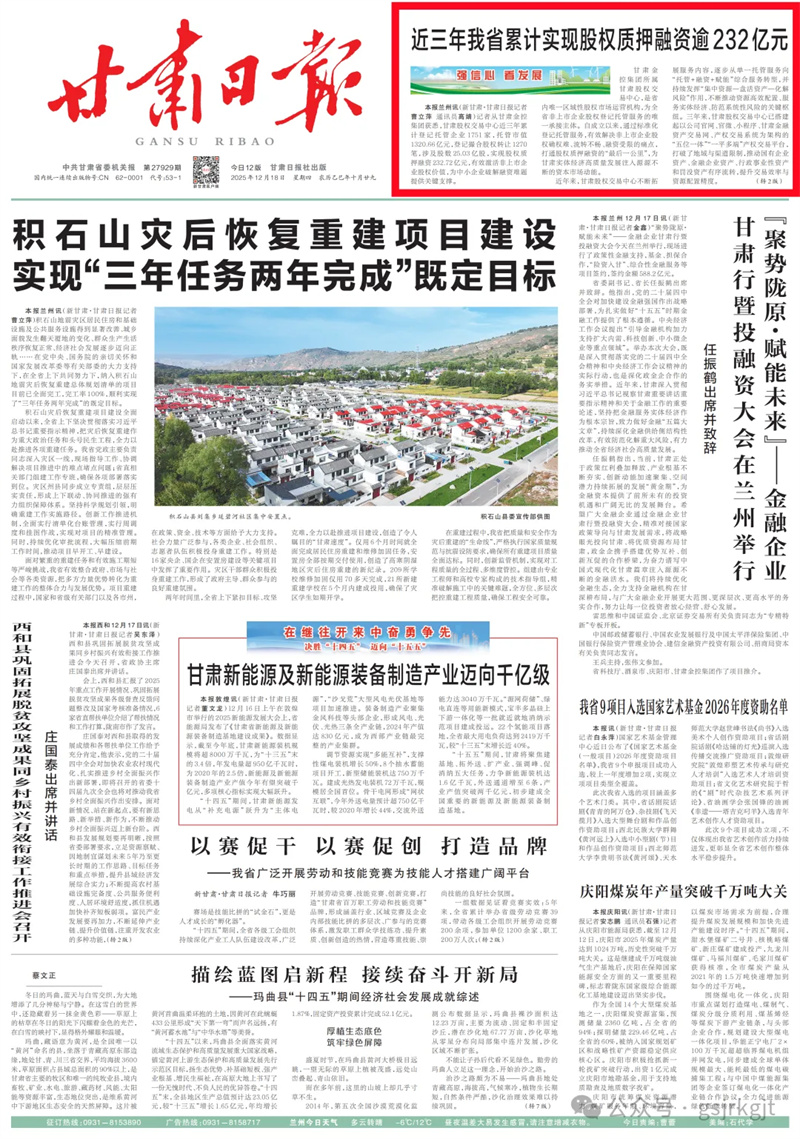 甘肅金控集團所屬甘肅股權交易中心,是省內唯一區域性股權市場運營機構,為全省非上市企業股權登記托管服務的唯一承接主體。自成立以來,通過標準化登記托管服務,有效解決非上市企業股權確權難、流轉不暢、融資受限的痛點,打通股權質押融資的“最后一公里”,為甘肅實體經濟高質量發展注入源源不斷的資本市場動能。