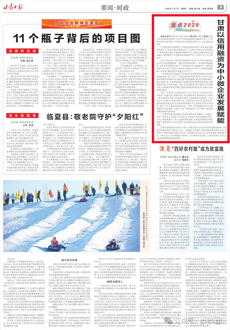 為進(jìn)一步提升平臺(tái)服務(wù)質(zhì)效,2025年以來,甘肅征信在平臺(tái)優(yōu)化、功能互通、數(shù)據(jù)共享、技術(shù)賦能等方面持續(xù)發(fā)力,推出一系列創(chuàng)新性舉措,推動(dòng)政務(wù)服務(wù)與金融服務(wù)深度融合,完成平臺(tái)與“甘快辦”系統(tǒng)對(duì)接工作,全新升級(jí)“政采貸”服務(wù)專區(qū),推動(dòng)政府采購中標(biāo)企業(yè)融資服務(wù)數(shù)字化,實(shí)現(xiàn)政采貸業(yè)務(wù)閉環(huán),提升了中小微企業(yè)融資效率。同時(shí),依托數(shù)據(jù)驅(qū)動(dòng)與大模型輔助,打造金融“五篇大文章”特色板塊,為平臺(tái)用戶提供更便捷的融資信用服務(wù)。