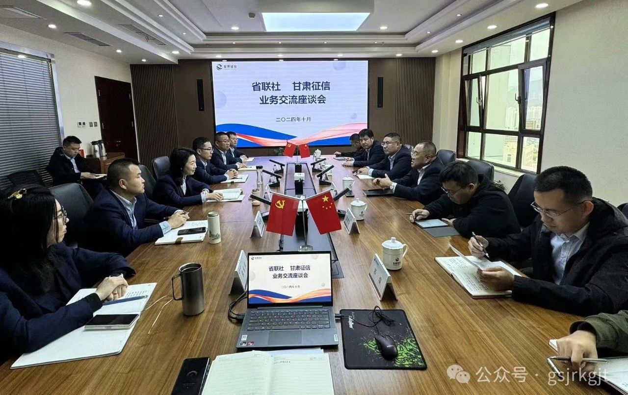 近日,省農信社公司部總經理李峰一行前往甘肅征信進行業務交流座談。甘肅征信主要負責人及相關部門人員參會。